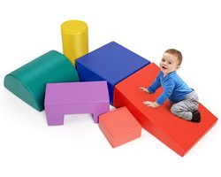 COSTWAY 6-delige schuimbouwstenen, zachte bouwstenen met tune, trap en helling, reuzenbouwstenen om te klimmen en ravotten, grote bouwstenen van schuim, klimblokken, voor binnen, voor kinderen
