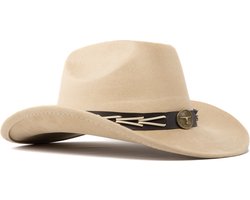 KIMU Cowboyhoed Beige Gevlochten Band - Lichtbruine Cowboy Western Hoed Vlecht Dames Heren - Cowgirl Touw Zwart Wit Carnaval