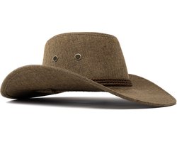 KIMU Cowboyhoed Donkerbruin Flax - Donkerbruine Linnen Cowboy Western Hoed Vlecht Dames Heren - Cowgirl Vlas Vlasvezel Carnaval