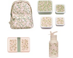 BEAU by Bo A Little Lovely Company Back to school set - Rugzak/Drinkfles RVS/4 Snackdozen/Lunchbox - Bloesems Roze