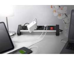 Digitus DA-70614 Stekkerdoos met schakelaar Aluminium, Aluminium-zilver, Zwart, Zilver Randaarde stekker 1 stuk(s)