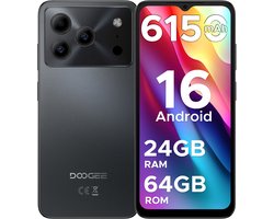 DOOGEE Note 56 (2025) -Smartphone-Android 16-24G RAM-64G ROM-6150mAh-6,56 inch-90Hz-4G Dual SIM-Gezichtsherkenning-GPS-3,5mm Koptelefoonaansluiting-Zwart