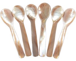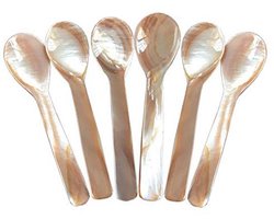 DUEBEL Set of 6 pink mother-of-pearl MOP Mother of Pearl spoons for caviar eggs serving (pink, 9x2.2cm)