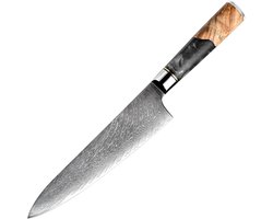 Dastium Home - 67-Laags Damascus Staal Koksmes 20CM - Damaststaal Keukenmes - Japans Mes van Echt Damascus Staal - Met Ergonomisch Hout en Zwart Harsen Handvat