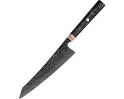 Dastium Home - 67-Laags Damascus Staal Koksmes 21CM - Damaststaal Keukenmes - Japans Mes van Echt Damascus Staal - Met Ergonomisch Forged Carbon Handvat
