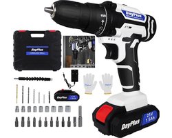 Accu boormachine - Schroefboormachine - Accu schroevendraaier - 21V - Set Schroevendraaier - Inclusief handschoenen en gereedschapskoffer - Voor hout, ceramiek, tegel en metaal