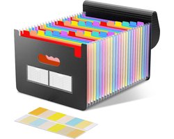 Documentenmap A4, opbergmap met vouwvakken, 24 vakken, met deksel, opslag van administratief papier, uittrekbaar, accordeon-organizer voor kantoor/school benodigdheden