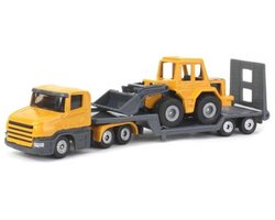 Dieplader met voorlader - Gedetailleerd bouwvoertuig van metaal en kunststof met beweegbare achterklep
