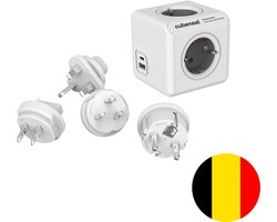 Cubenest Reisstekker, Powercube Rewirable USB PD 20W, USB A+C, 4-voudig, wit/grijs - België E type, max 16A/250V~3680W, 150+ landen - Amerika (USA) - Zuid-Amerika - Engeland (UK) - Azië - Europa - Afrika
