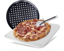 Pizzasteen Set - 38 cm x 30 cm - Broodbaksteen - Voor de oven & BBQ - Pizzaplaat - Inclusief Pizzasnijder - BBQ Steen - Pizzasteen Oven - Pizzastenen - Pizza Bakplaat - Pizzaplaat - Pizzasteen