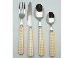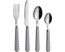 Gingham Roestvrijstalen bestekset, 24 stuks, gekleurde handgrepen, 6 x tafelvorken, 6 x tafelmessen, 6 x dinerlepels, 6 x theelepels (24 x grijs)