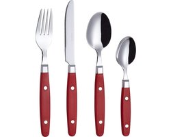 Bestekset 24-delig roestvrij staal - met niet-knutselhandgrepen/bestek in retrostijl - 6 x eetvorken, 6 x eetmessen, 6 x eetlepels, 6 x theelepels - 6 (rood)