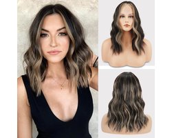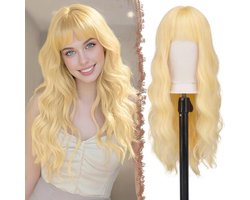 FESHFEN Lange Pruiken met Pony voor Dames Golvende Krullende Pruik Honing Blond Pruiken Natuurlijke Synthetische Haarpruiken met Franje Wig voor Dagelijks Party