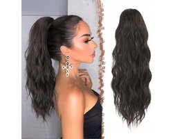 FESHFEN Haarverlenging Paardenstaart Donkerbruin Lang Golvend 45cm