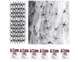 FINEVERNEK 6 Packs Halloween Spinnenweb Decoratie, 120g Spinnenwebben met 60 Nep Spinnen voor Halloween Decoratie Prop voor Halloween Carnaval Feest