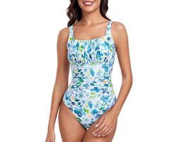 FLYILY Vrouwen Ruches Badpakken Buikcontrole Badpak Afslankende Monokini 1 Stuk Badmode