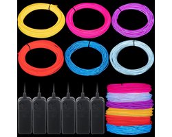 Sander Shop 6-pack 16 ft EL-draad neondraad, draagbaar, LED-verlichting 360° DIY knipbare gloeiende lichtslang op batterijen, neonlichtsnoer voor kerstversiering (felle kleur)