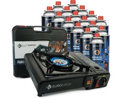 Eurocatch Outdoor - Kooktoestel op Gas - incl. 8 Butaan Gasbussen - Gas Stove - Camping Kooktoestel - Gaspit - Gasfornuis - Gasstel - Cooker - Draagkoffer