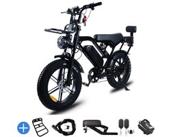 V20 Pro Fatbike - RIJKLAAR- Hydraulische Remmen - Alarmsysteem + Achterzitje + Telefoonhouder + Voetsteuntjes - 250W - 7 versnellingen