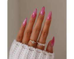 Rosa Press Nails Medium Almond Cat Eye False Nails - Acrylic Glue Nails met Silver Glitter Designs - Full Cover Faux Nails - 24 Pieces
