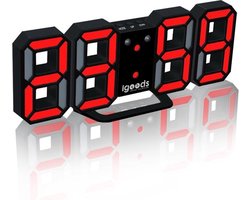 Igoods Digitale Tafelklok - Led Wekker Klok - Digitale 3D Wekker - Moderne Bureauklok - Met Temperatuurmeter - Zwart/Rood