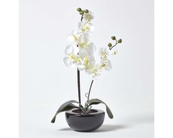 Homescapes kunstbloem orchidee arrangement roze met zwarte keramische pot
