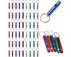 54x Noodfluitje - fluitje - noodfluit - scheidsrechtersfluitjes - Sleutelhanger met noodfluit - Alarmfuit - fluitje noodpakkets - voor kamperen, wandelen, booten, jagen, vissen - Kleine en lichte Aluminium sportfluitje - Willekeurige Kleuren