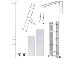 Froadp 580cm Aluminium Steiger Multifunctionele ladder Combi Huishoudtrappen Vouwladder Schuifladder Anti-slip Anleunladder met 2 Stuks Platform Belastbaarheid 150KG (Zilver, 4x5 Treden)
