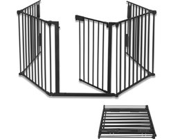 Froadp 300cm Schoorsteenbeschermingsrooster met Deur 5-Delig Puppyuitloop Looprooster Inklapbaar Kinder Beschermingsrooster Dieren & Baby's Beschermingsrooster Metaal Afsluitrooster voor Oven Deur