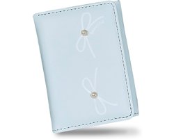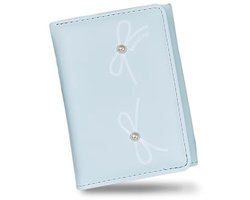 FuninCrea Damesportemonnee van PU-leer, met ID-venster en 6 creditcardvakken, kaarthouder portemonnee, draagbaar, met strikpatroon en kleine kralen, blauw, 10.5*8.2 cm, Modern