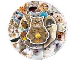 Katten Stickers - 50 stuks - 5x6CM - Grappige Cat Memes stickers - Internet poezen/dieren vinyl stickers voor kinderen en volwassenen
