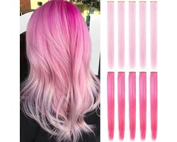 Light Pink&Pink Hair Extensions for Girls Wig Pieces Clip in Coloured Hair Extensions for Kids Colorful Hairpieces Party Highlights Heat Resistant Synthetic Long Straight Multiple Colors