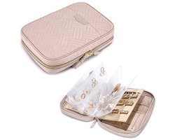 GIONAR Sieradenkistje voor op reis, sieradenorganizer, sieradenetui, sieradenorganisatorzakjes, sieradenzakje met doorzichtige zakken en ritssluiting voor oorbellen, kettingen en armbanden (roze)