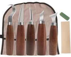 8-delige houtsnijmessenset - Beitelgereedschapset - Perfect voor beginners, houtsnijders en houtbewerkers - Met massief houten handvat - Draagbare opbergtas - Met slijpgereedschap - Zilver, natuurlijke houtkleur