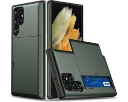 Hoesje met Kaarthouder Slider Geschikt voor Samsung Galaxy S23 Ultra | Pasjeshouder Achterkant | Kaarthouder voor twee á drie pasjes | Groen