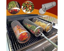 Bbq Grillmand - Rollende Grillmand - Roestvrijstalen Groenten Grillrooster 20 cm - Barbecue Grillrooster