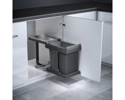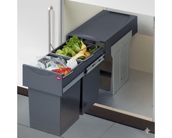 Hailo Tandem - Inbouw Prullenbak - 30 Liter Inhoud - Met 2 Compartimenten - Grijs