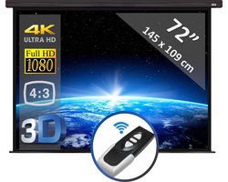 Elektrisch projectiescherm met afstandsbediening - 72" (183cm) - 145 x 109 cm - 4:3 - beamer scherm - ZWARTE behuizing