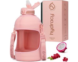Waterfles met hoes met zakken - 2,3 L waterfles met rietje en handvat - BPA-vrije waterfles met tijdmarkering - Fles lekvrij - Sport- en buitenwaterfles