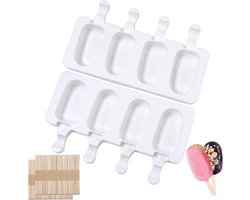 OIMG IJsvormpje - met 100 ijsstokjes - IJslolly Vormen - siliconen mal - BPA Vrij - Herbruikbaar - Kan 8 ijsjes tegelijk maken - wit