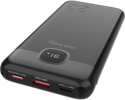 Powerbank 20000 mAh - Snellader 22.5W - LED indicator - USB-C, USB-A & Micro USB - Universele Powerbank - Zwart - Vivid Green