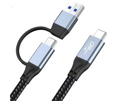 USB-C naar USB-C/USB-A Combikabel met 20Gbit/s Data + Video 4K + supersnel opladen 100W. ( Lengte van kabel is 1.5 meter)