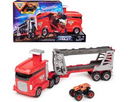 Monster Jam - officiële 2-in-1 Launch N’ Go Hauler-speelset en opbergdoos met unieke monstertruck schaal van 1:64