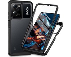 Hoesje met Ingebouwde Screenprotector voor de Xiaomi Redmi Note 12 Pro 5G / Poco X5 Pro | Full Protect valbescherming | Doorzichtig / Zwart
