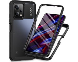 Hoesje met Ingebouwde Screenprotector voor de Xiaomi Redmi Note 12 5G / Poco X5 | Full Protect valbescherming | Doorzichtig / Zwart