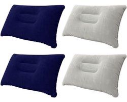 4 Pack Inflatable Camping Cushion Blue and Grey Travel Pillow Air Cushion for Office Weekend Trip Beach Holiday Tent