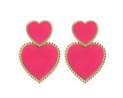 The Jewellery Club - Sanne heart earrings pink - Oorbellen - Dames oorbellen - Hart - Stainless steel - Goudkleurig - Roze - 5,3 cm