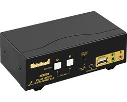 KVM Switch Dual Monitor HDMI met Auto Detectie – 2-PC Schakelaar, 4K UHD, USB Plug & Play