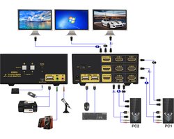 Auto detection Dual Monitor 4 PC's HDMI KVM switch