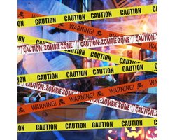 Jsdoin Halloween-decoraties, waarschuwingsband, 30 m, geel, gevarenwaarschuwing-rekwisieten, schrikband voor zombie-party, spookhuisfeest, gevarengebieden, decoratie